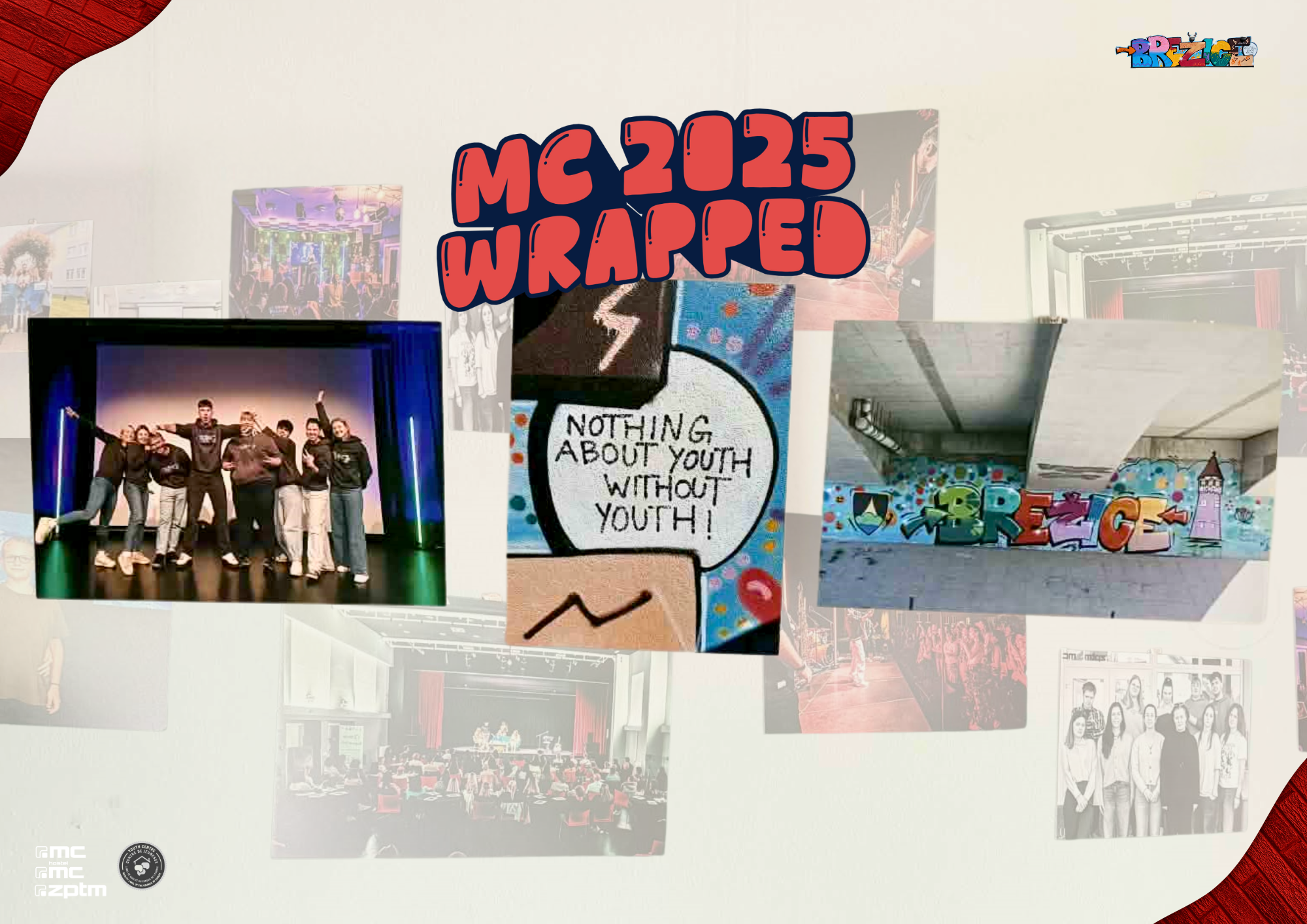 Razstava MC 2025 Wrapped predstavlja izbrane utrinke iz preteklega leta. Prikazujemo le del dogajanja – vsak dogodek in prispevek je imel svoj pomen, a v ozadju je še veliko drugih trenutkov, ki so doprinosili življenju mladinskega centra. Zato je bilo tudi težko izbrati, katere slike vključiti, saj bi skoraj vse zaslužile mesto na razstavi.